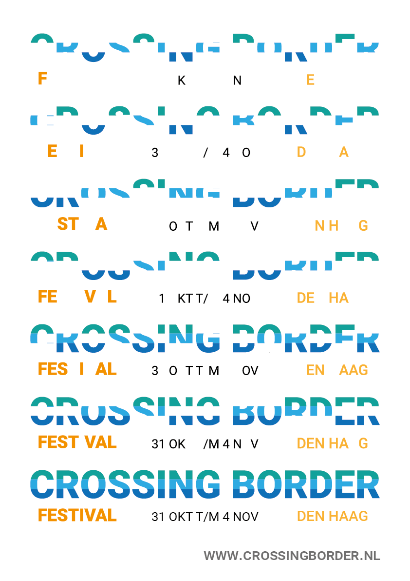 Aan de hand van twee bestaande festivals (Crossing Border en Nacht van de Dictatuur) heb ik geƫxperimenteerd met illustratie, beeld en tekst om een aantal verschillende posters te ontwerpen, om zowel een aansprekend beeld te creƫren en tegelijk ook de boodschap duidelijk over te brengen.